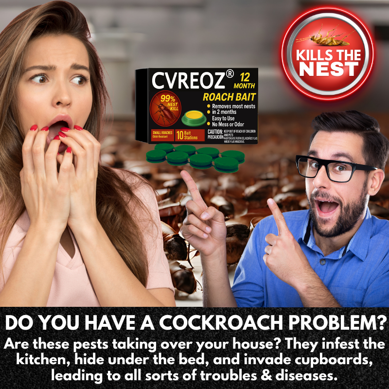 Are these pests invading your home? 🪳 Cockroaches are infesting your kitchen, hiding under your bed, and invading your cupboards, causing numerous problems and spreading diseases. The Cvreoz® QuikCatch Killer RoachAce Bait Station contains an enticing, contagious, and lethal gel bait. This bait infects any cockroach that comes into contact with it, slowing down its death to ensure it can spread the poison to others. This chain reaction effectively eliminates entire cockroach colonies and nests. 💥🏡